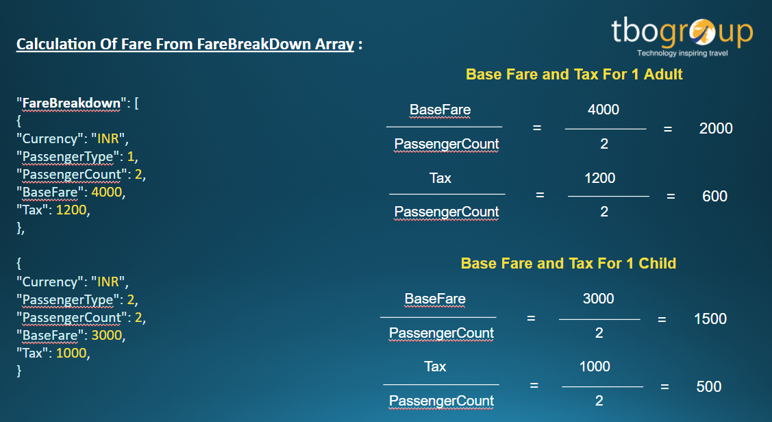If Base Fare received is 4000 and passenger count is 2 irrespective pax type then divide 4000